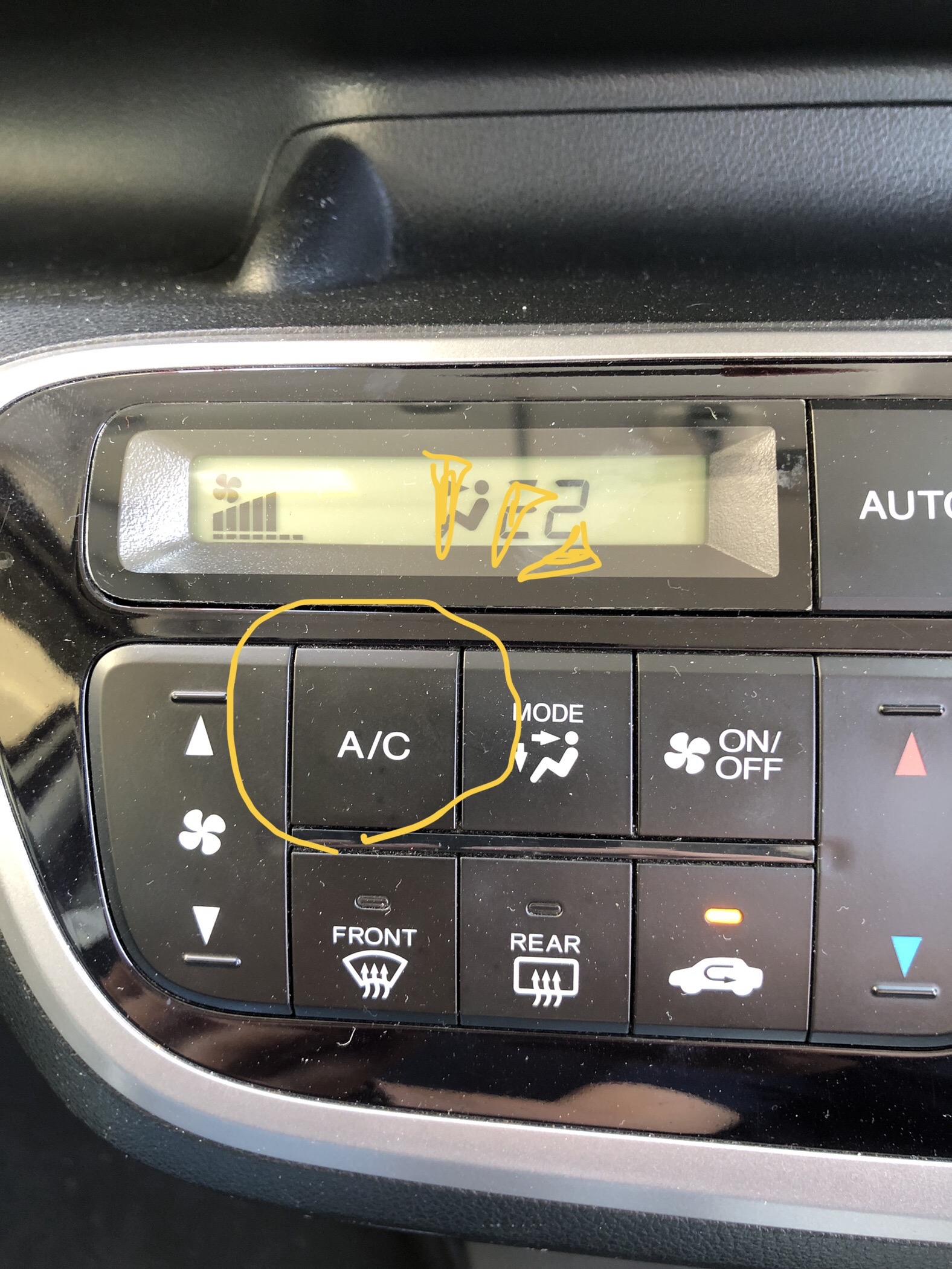 A/Cボタンが点灯しているか、A/Cの表示がされているか見てみましょう