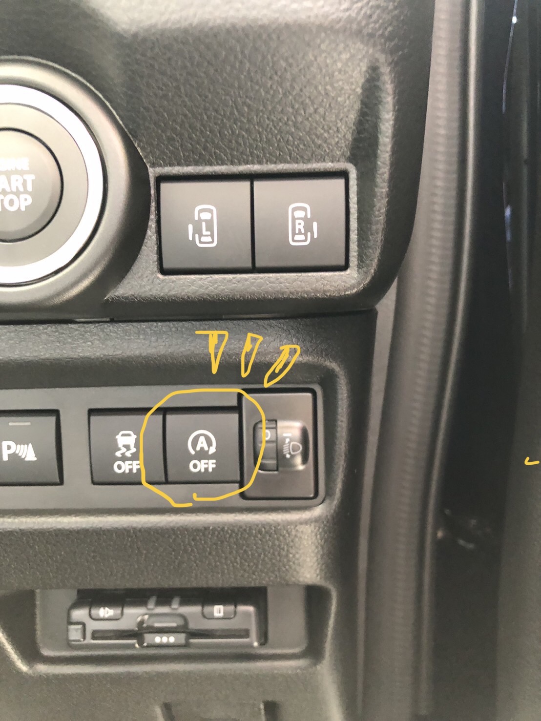 アイドリングストップOFFスイッチを押すと