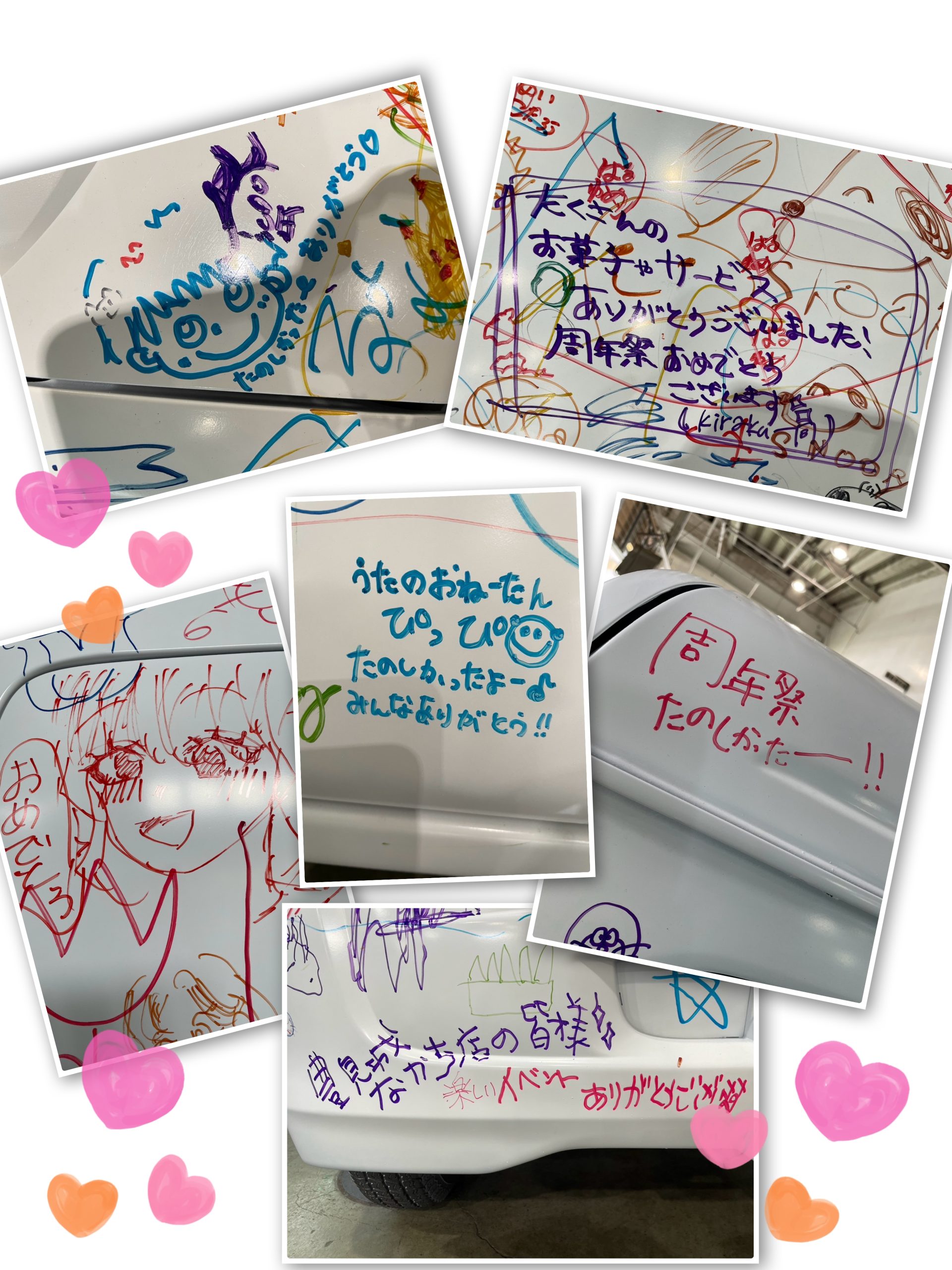その時に大人気だった落書きカーを後日じっくり見てみると、嬉しい言葉をたくさん発見しました![]()