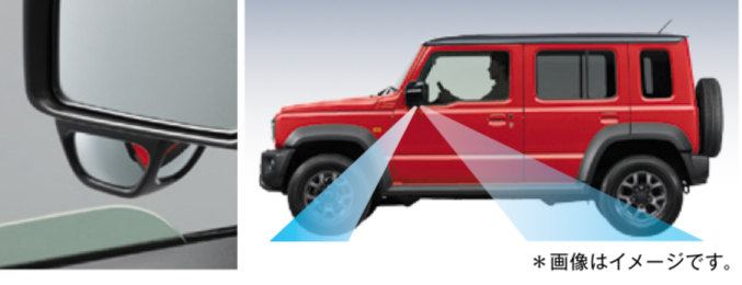 助手席側サイドミラーには2面鏡がついているので、運転席から見えづらい死角もうつしてくれます。